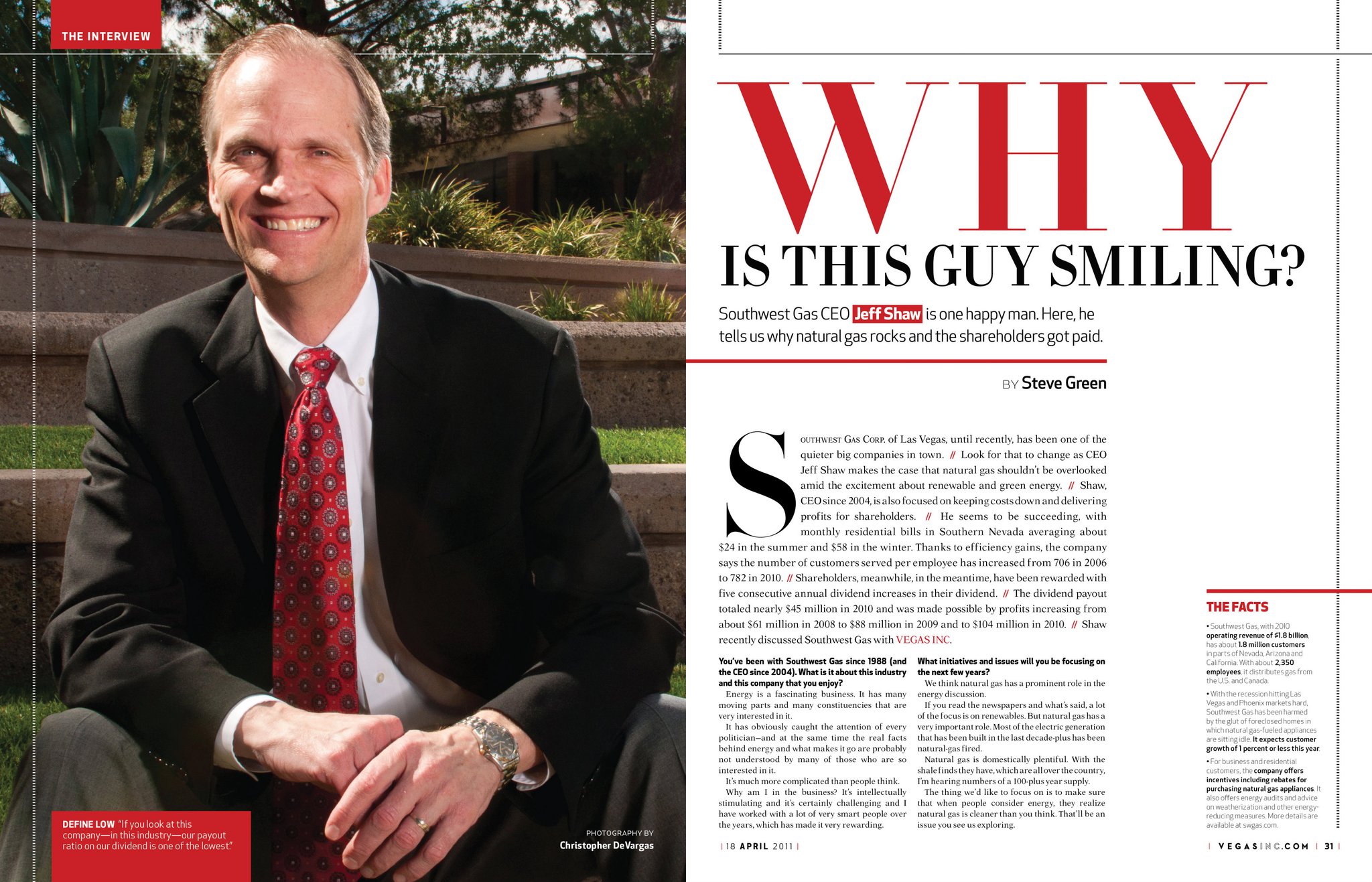 I redesigned the business newspaper into an award winning magazine that reflected the life of Vegas. Within a 10-week deadline, the magazine went from concept to printing its first issue. As part of the redesign, I created an extensive style guide and established production workflows for the team to follow.
